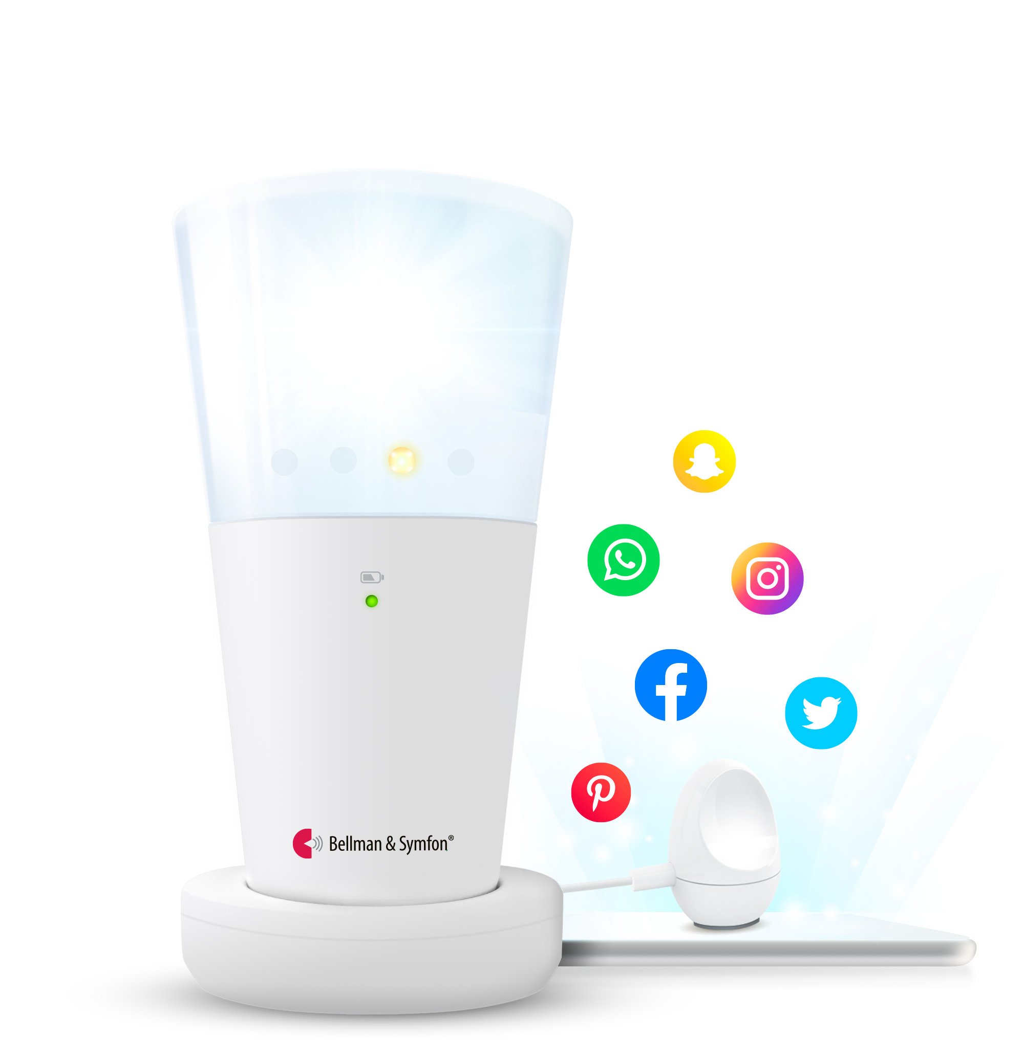 In close collaboration with the hearing clinics, the Bellman company developed a system that could help the deaf and hard of hearing to keep track of the various signals in the home. Bellman Visit featured doorbell and telephone detection, baby monitoring, and fire protection. It alerted the user with amplified sound, flashing light, and vibrations.